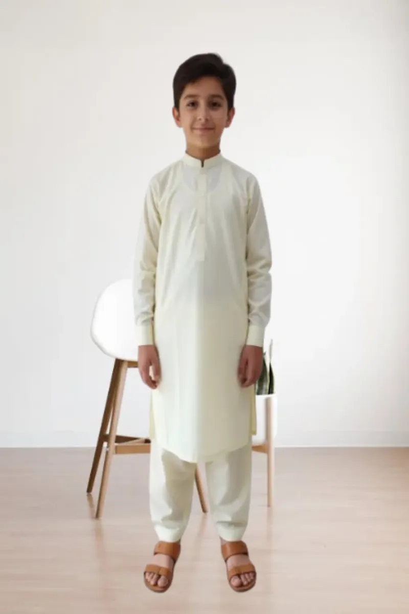 Clothing Boys Casual Wear Stitched 2 Piece Cotton Dar Al Fashion Blend Plain Regular Plain Work Cream Size 18