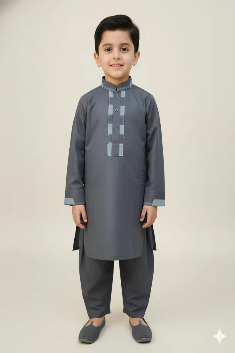 Clothing Boys Casual Wear Stitched 2 Piece Cotton Dar Al Fashion Potpourri Plain Regular Plain Work Grey Size 14