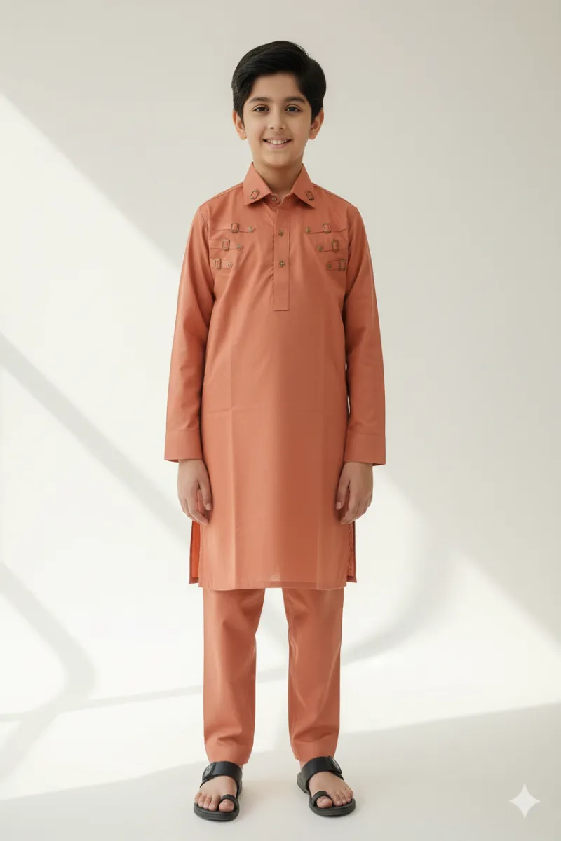 Clothing Boys Festive Wear Stitched 2 Piece Cotton Dar Al Fashion Blend Plain Regular Plain Work Mustard Size 24