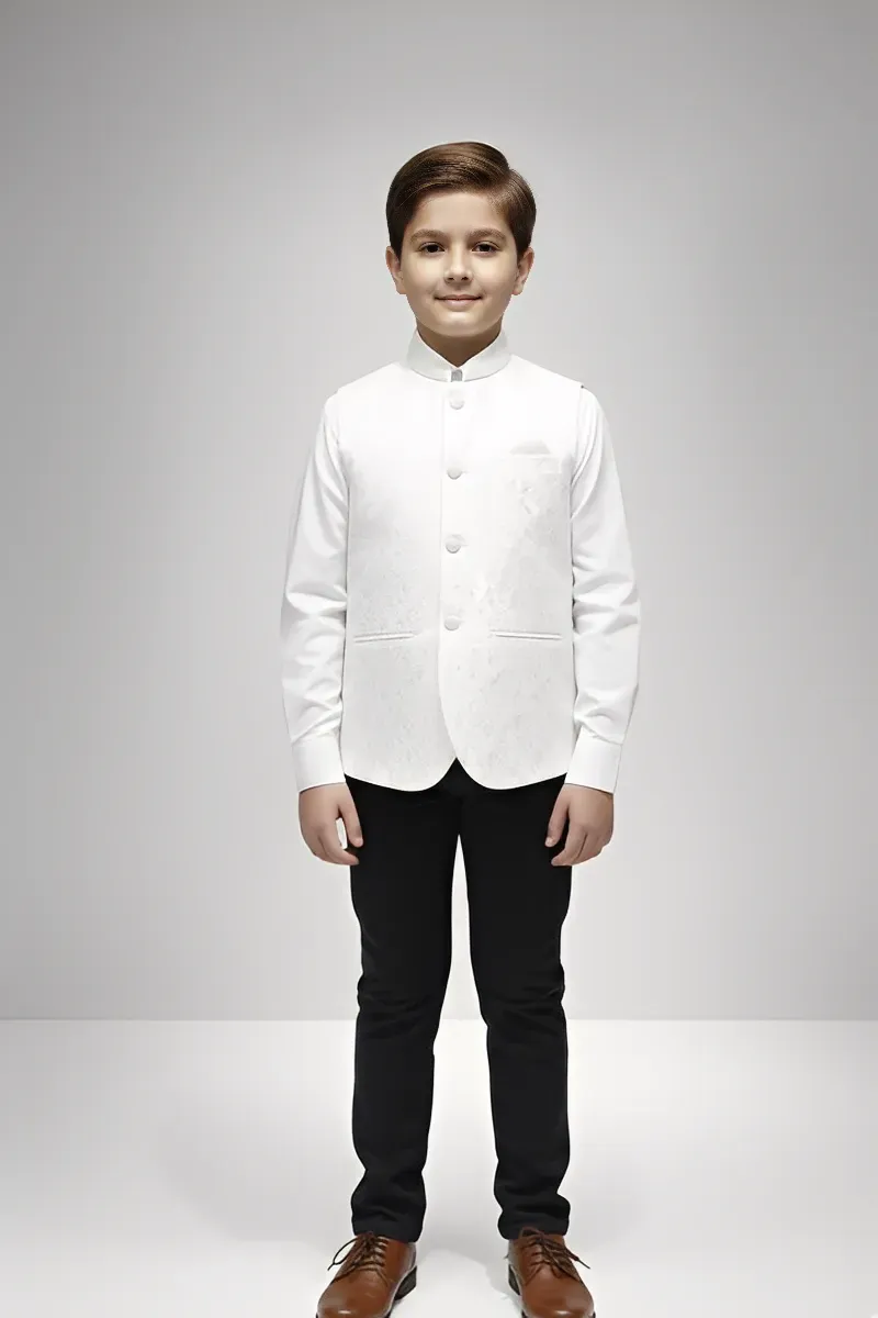Clothing Boys Party Wear Stitched Waistcoat Cotton Dar Al Fashion Blend Printed Regular Print Work Cream Size 22