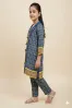Clothing Girls Casual Wear Stitched 3 Piece Cotton Dar Al Fashion Blend Chiffon Dupatta Gala Daman Embroidered Moderate Print Work Blue Size 36