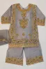 Clothing Girls Party Wear Stitched 3 Piece Organza Dar Al Fashion Blend Net Dupatta Gala Daman Embroidered Regular Thread Zari Work Grey Size 28