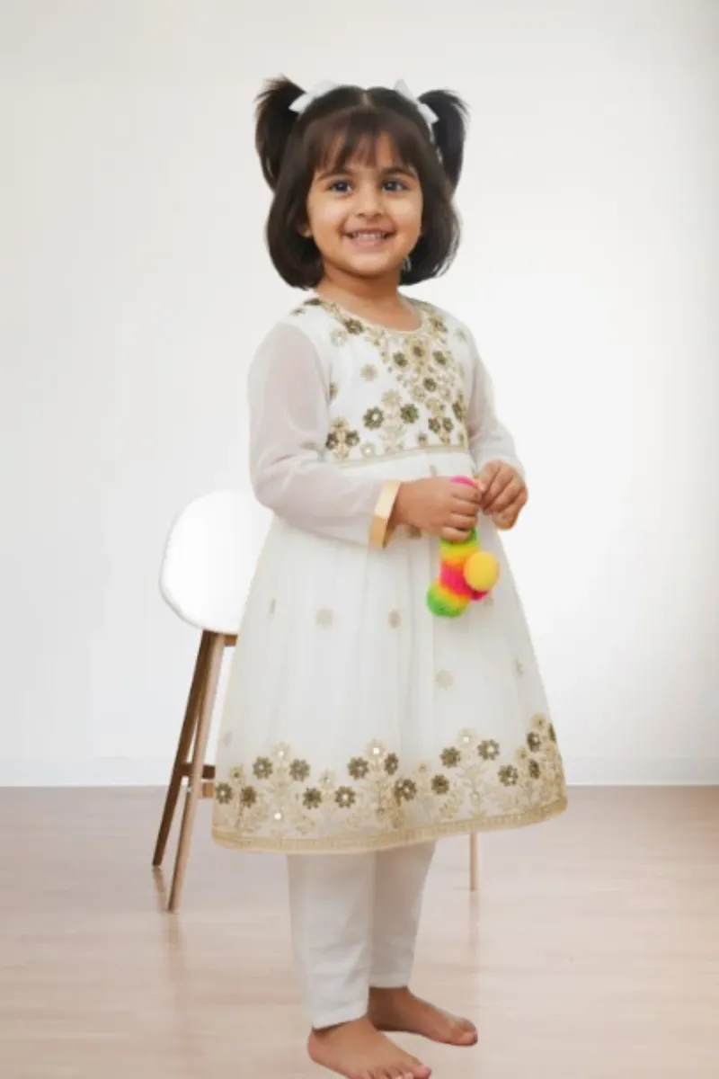 Clothing Girls Party Wear Stitched 3 Piece Chiffon Dar Al Fashion Blend Chiffon Dupatta Gala Daman Embroidered Moderate Zari Ston Work White Size 18