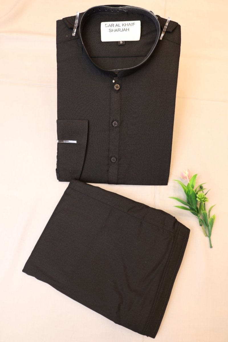 Clothing Men Casual Wear Stitched 2 Piece Cotton Dar Al Fashion Blend Plain Heavy Plain Work Black Medium