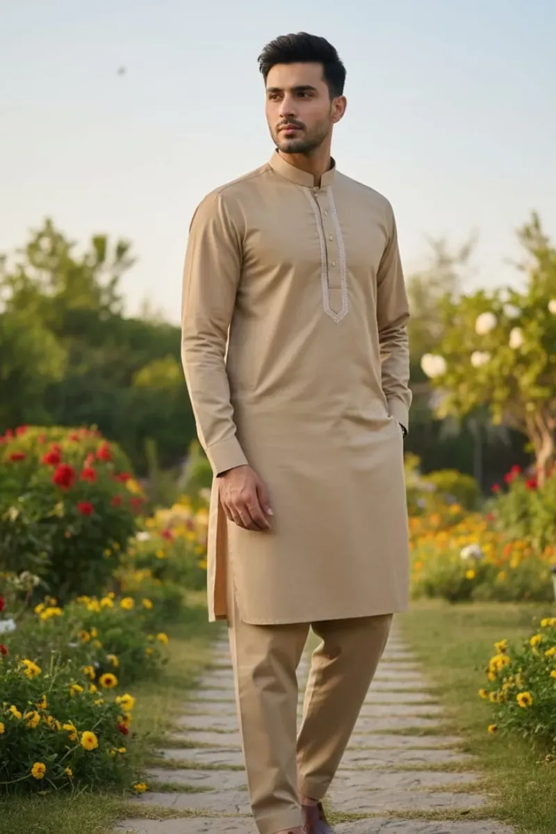Clothing Men Casual Wear Stitched 2 Piece Cotton Dar Al Fashion Potpourri Embroidery Moderate Thread Work Skin Small