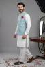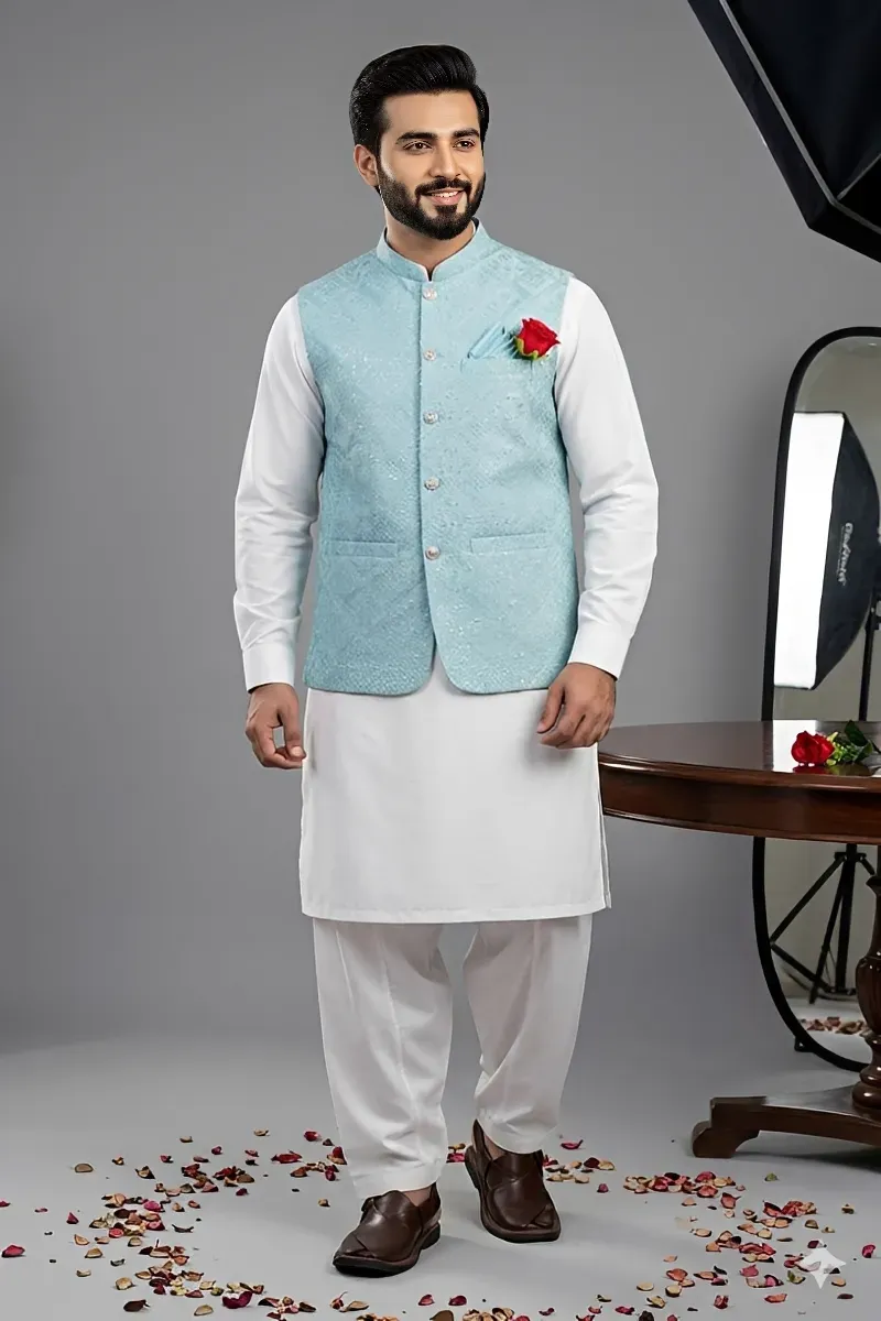 Clothing Men Festive Wear Stitched Waistcoat Jamawar Dar Al Fashion Blend Embroidery Regular Thread Sequin Work Green Medium Waistcoat