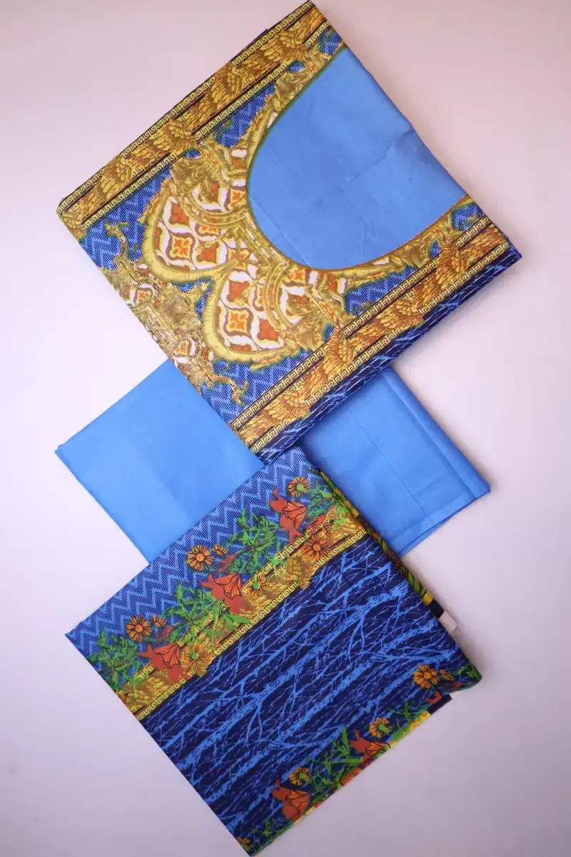 Clothing Women Casual Wear Un-stitched 3 Piece Cotton Dar Al Fashion Blend Cotton Dupatta Gala Daman Embroidered Medium Plain Work Blue Co Mi Classic