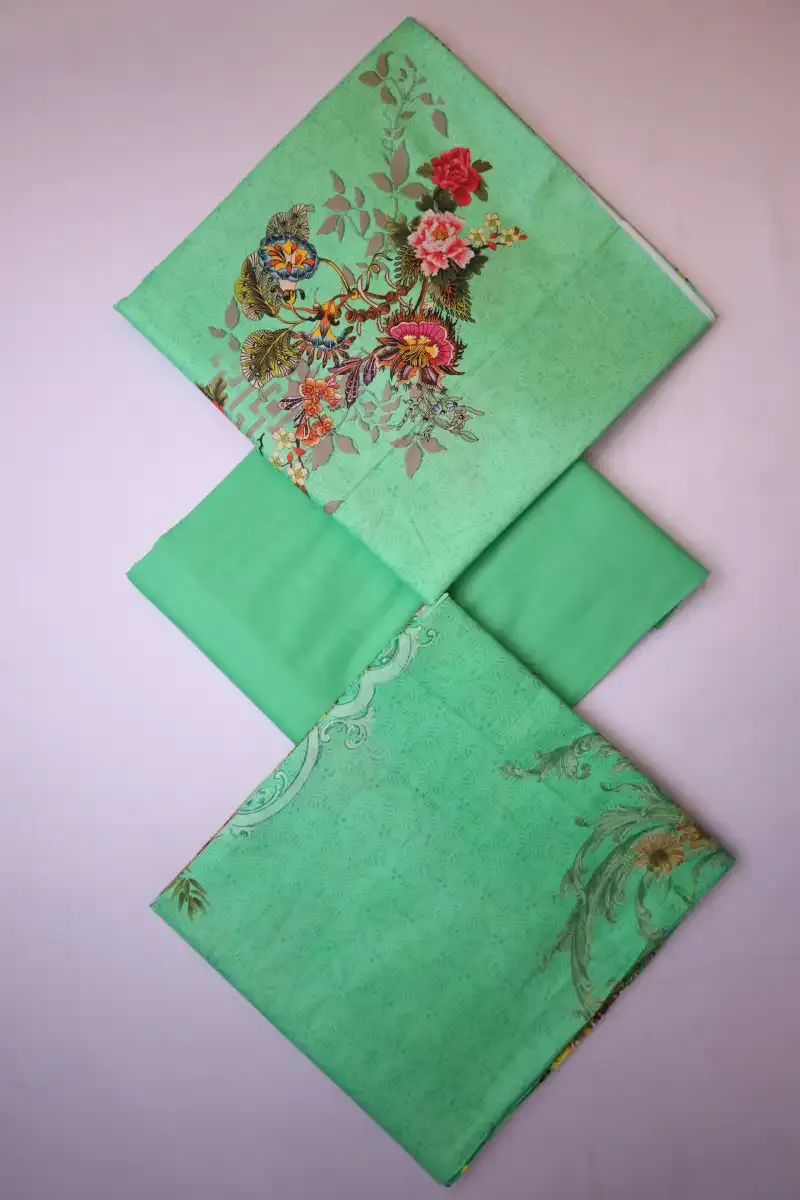 Clothing Women Casual Wear Un-stitched 3 Piece Cotton Dar Al Fashion Blend Cotton Dupatta Gala Daman Embroidered Medium Plain Work Green Co Mi Classic