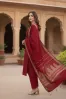 Clothing Women Casual Wear Un-stitched 3 Piece Cotton Dar Al Fashion Blend Jacquard Dupatta Front Back Embroidered Regular Thread Sequin Work Red