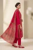 Clothing Women Casual Wear Un-stitched 3 Piece Cotton Dar Al Fashion Blend Jacquard Dupatta Gala Daman Embroidered Moderate Thread Work Maroon