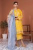 Clothing Women Casual Wear Un-stitched 3 Piece Lawn Al Karam Meraki Organza Dupatta Gala Daman Embroidered Regular Thread Work Yellow