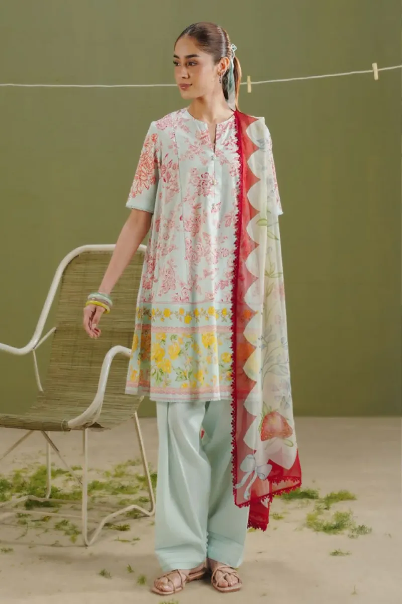 Clothing Women Casual Wear Un-stitched 3 Piece Lawn Coco Coco Prints Chiffon Dupatta Gala Daman Embroidered Regular Print Work Blue 4b