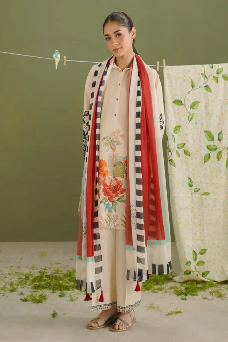 Clothing Women Casual Wear Un-stitched 3 Piece Lawn Coco Coco Prints Silk Dupatta Gala Daman Embroidered Regular Print Work Skin 3a