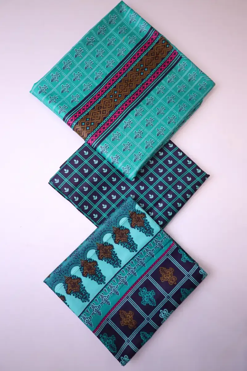 Clothing Women Casual Wear Un-stitched 3 Piece Lawn Dar Al Fashion Blend Cotton Dupatta Gala Daman Embroidered Regular Plain Work Green