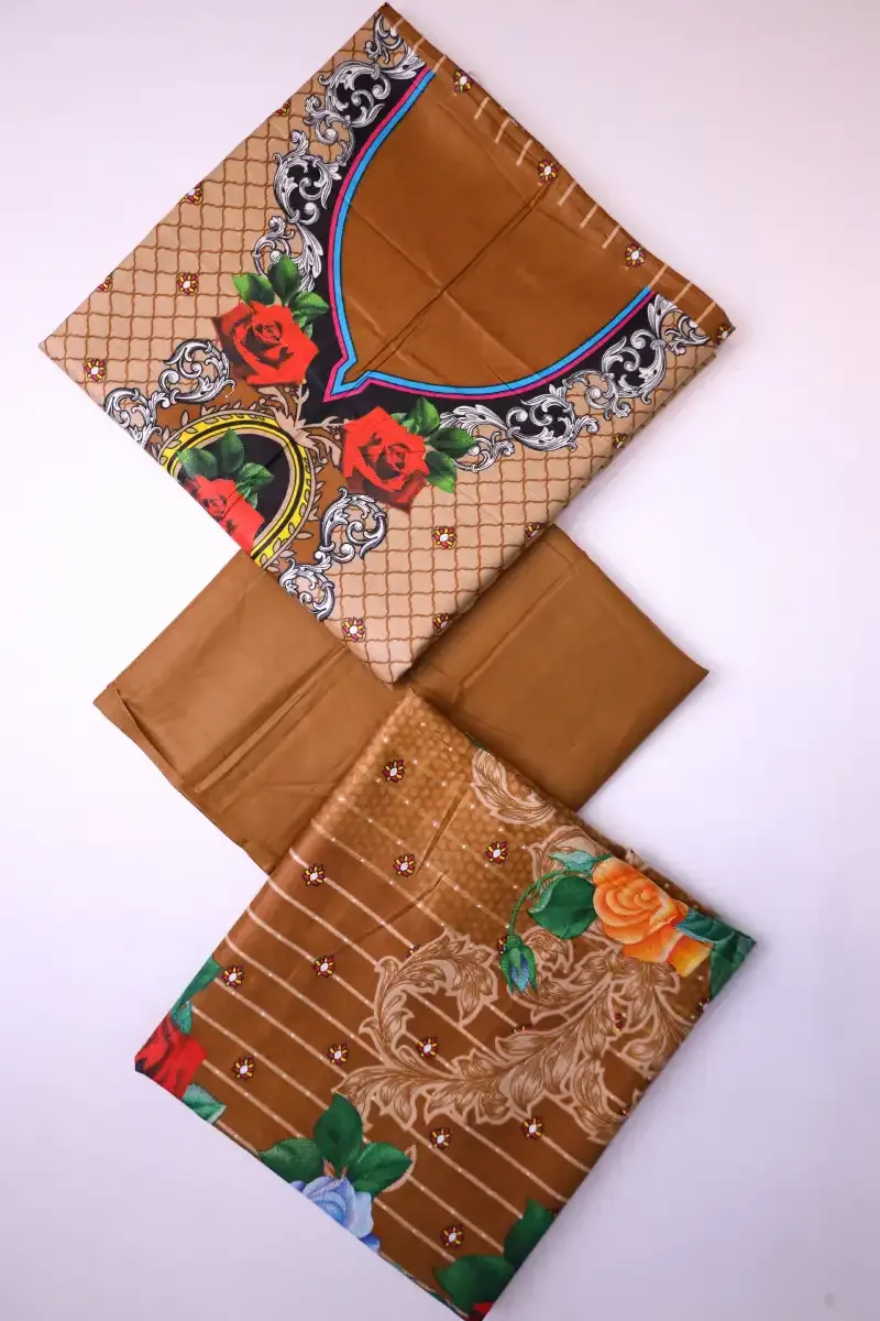Clothing Women Casual Wear Un-stitched 3 Piece Lawn Dar Al Fashion Blend Cotton Dupatta Gala Daman Embroidered Regular Plain Work Mustard