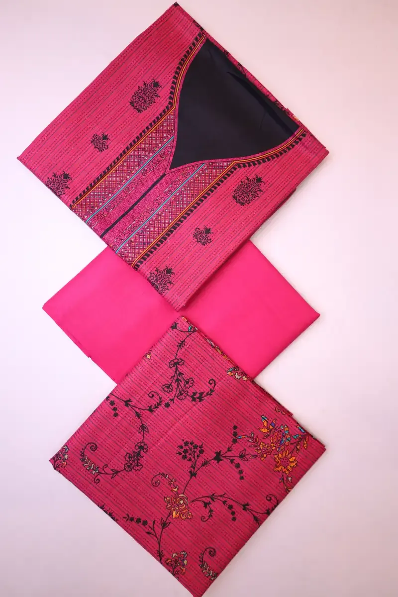 Clothing Women Casual Wear Un-stitched 3 Piece Lawn Dar Al Fashion Blend Cotton Dupatta Gala Daman Embroidered Regular Plain Work Pink