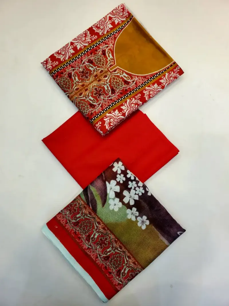 Clothing Women Casual Wear Un-stitched 3 Piece Lawn Dar Al Fashion Blend Cotton Dupatta Gala Daman Embroidered Regular Plain Work Red