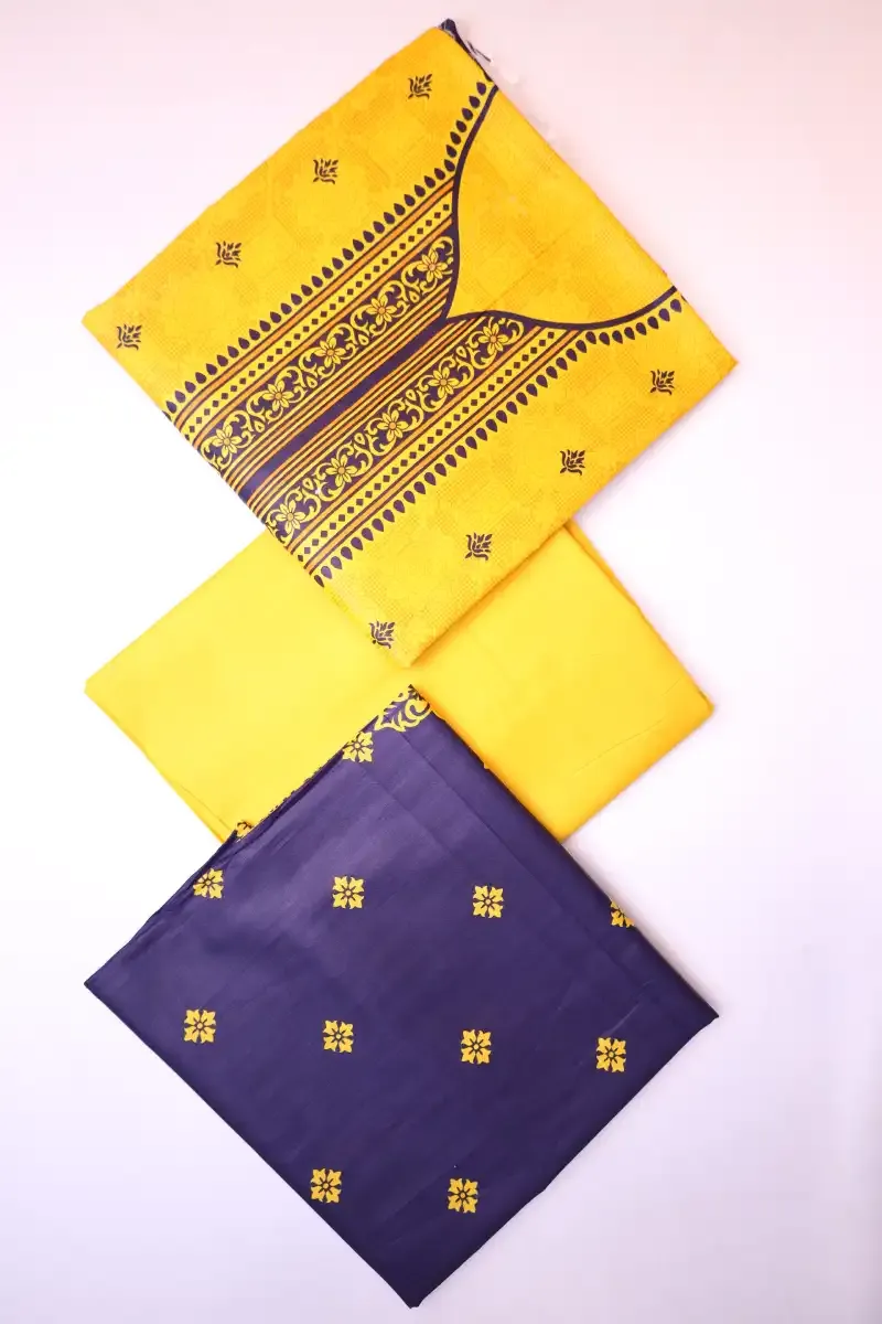 Clothing Women Casual Wear Un-stitched 3 Piece Lawn Dar Al Fashion Blend Cotton Dupatta Gala Daman Embroidered Regular Plain Work Yellow