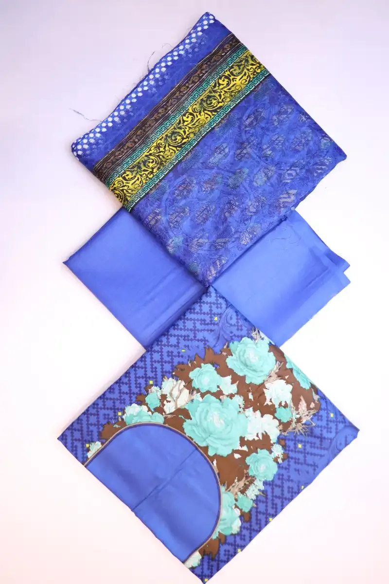 Clothing Women Casual Wear Un-stitched 3 Piece Lawn Dar Al Fashion Blend Jacquard Dupatta Gala Daman Embroidered Heavy Plain Work Blue