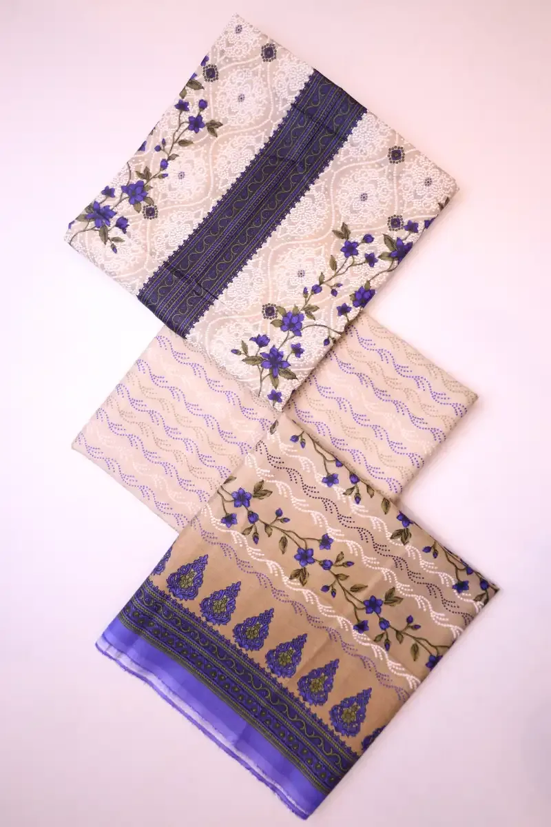Clothing Women Casual Wear Un-stitched 3 Piece Lawn Dar Al Fashion Blend Lawn Dupatta Gala Daman Heavy Plain Work Blue