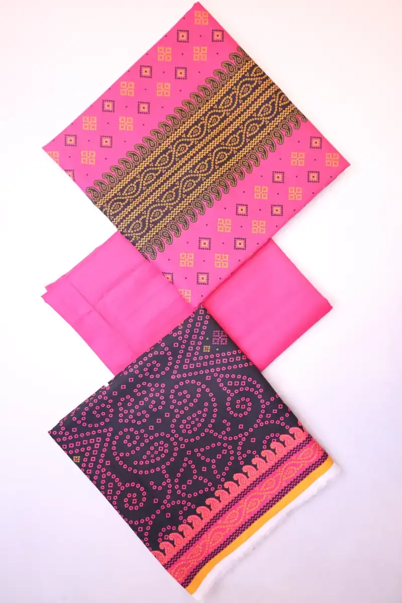 Clothing Women Casual Wear Un-stitched 3 Piece Lawn Dar Al Fashion Blend Lawn Dupatta Gala Daman Heavy Plain Work Pink