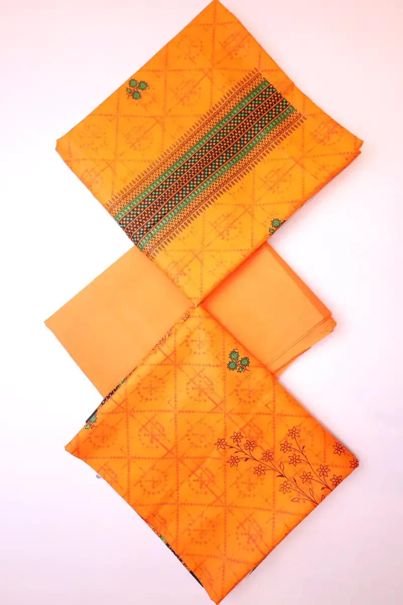 Clothing Women Casual Wear Un-stitched 3 Piece Lawn Dar Al Fashion Blend Lawn Dupatta Gala Daman Medium Plain Work Orange