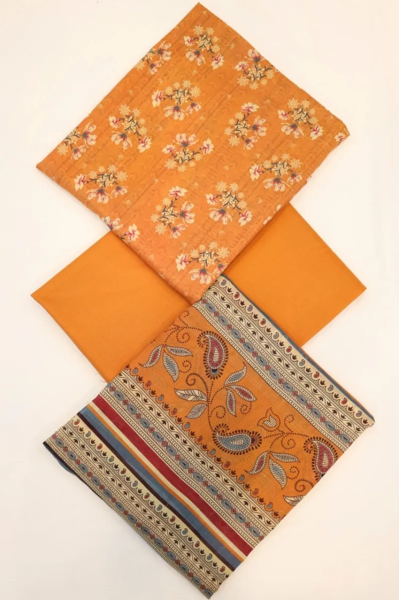 Clothing Women Casual Wear Un-stitched 3 Piece Lawn Dar Al Fashion Blend Printed Moderate Print Work Mustard
