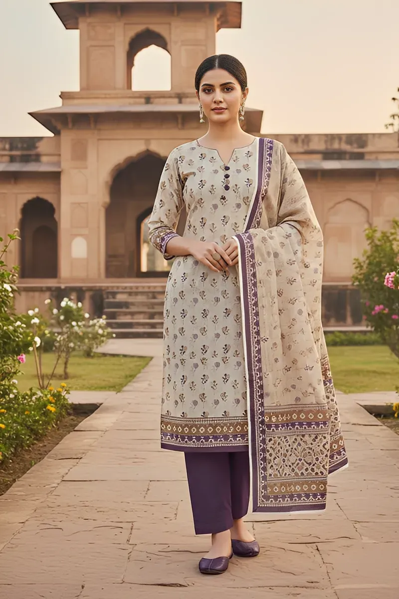Clothing Women Casual Wear Un-stitched 3 Piece Lawn Dar Al Fashion Blend Printed Moderate Print Work Skin
