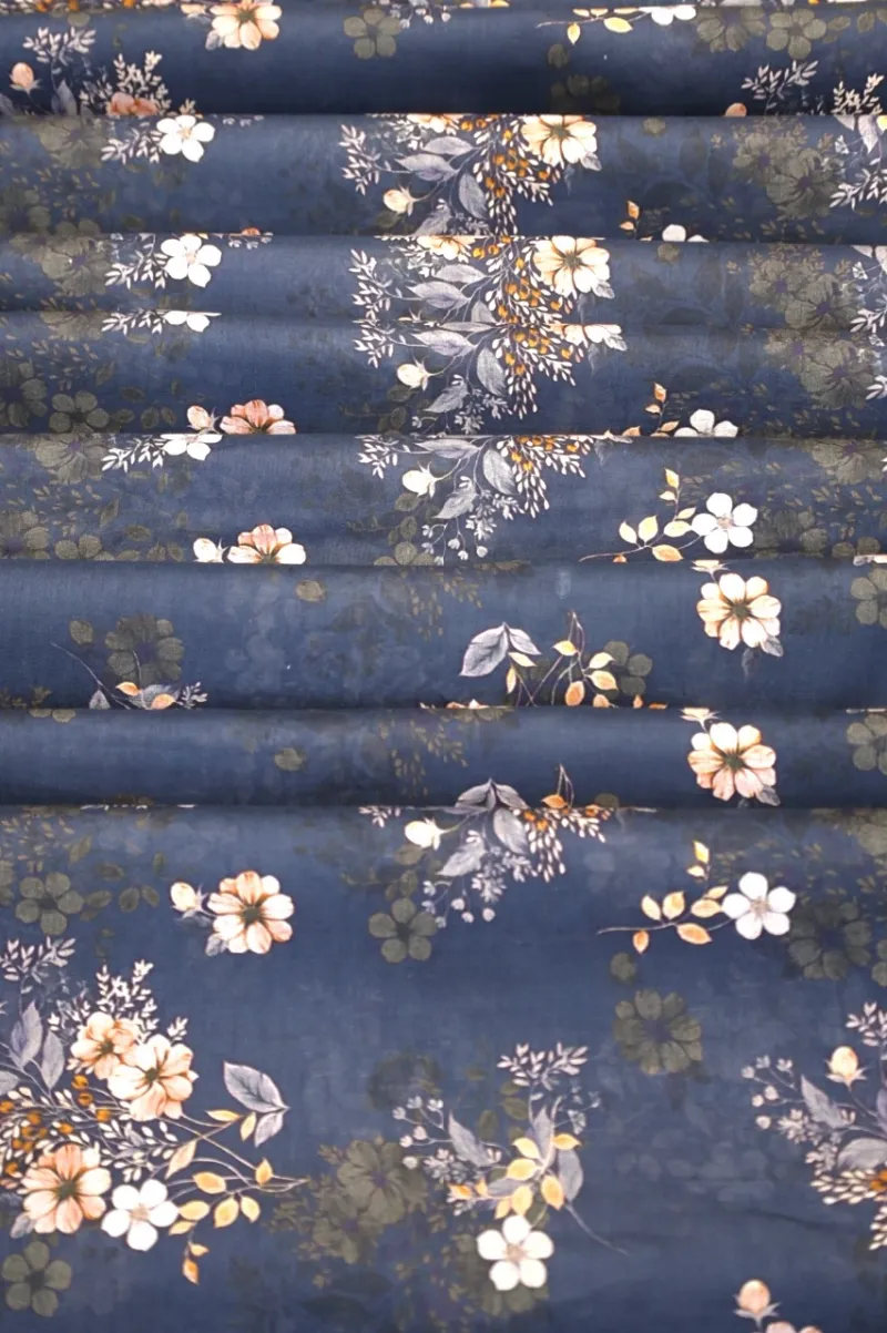 Clothing Women Casual Wear Un-stitched Shirt Lawn Dar Al Fashion Blend Printed Dupatta Allover Moderate Print Work Blue 1