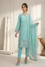 Clothing Women Casual Wear Stitched 3 Piece Cotton Dar Al Fashion Blend Chiffon Dupatta Gala Daman Embroidered Heavy Thread Sequin Work Blue Medium