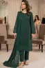 Clothing Women Casual Wear Stitched 3 Piece Cotton Dar Al Fashion Blend Chiffon Dupatta Gala Daman Embroidered Heavy Thread Sequin Work Green Small