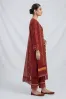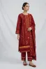 Clothing Women Casual Wear Stitched 3 Piece Cotton Dar Al Fashion Blend Chiffon Dupatta Gala Daman Embroidered Heavy Thread Sequin Work Maroon Medium