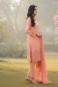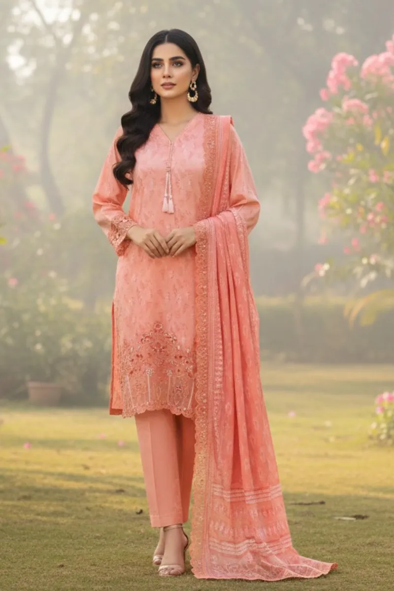 Clothing Women Casual Wear Stitched 3 Piece Cotton Dar Al Fashion Blend Cotton Dupatta Gala Daman Embroidered Moderate Thread Sequin Work Peach Large
