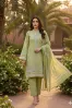 Clothing Women Casual Wear Stitched 3 Piece Lawn Dar Al Fashion Blend Chiffon Dupatta Gala Daman Embroidered Heavy Thread Sequin Work Green Large