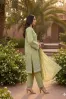 Clothing Women Casual Wear Stitched 3 Piece Lawn Dar Al Fashion Blend Chiffon Dupatta Gala Daman Embroidered Heavy Thread Sequin Work Green Small
