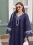 Clothing Women Festive Wear Un-stitched 3 Piece Lawn Noor By Saadia Luxury Chiffon Dupatta Gala Daman Embroidered Moderate Thread Work Blue D 07