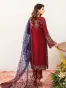 Clothing Women Party Wear Un-stitched 3 Piece Chiffon Dar Al Fashion Blend Net Dupatta Gala Daman Embroidered Moderate Thread Zari Work Maroon F 2410