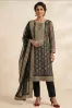 Clothing Women Party Wear Un-stitched 3 Piece Organza Alam Fabrics Blend Organza Dupatta Gala Daman Embroidered Heavy Zari Ston Work Black Black