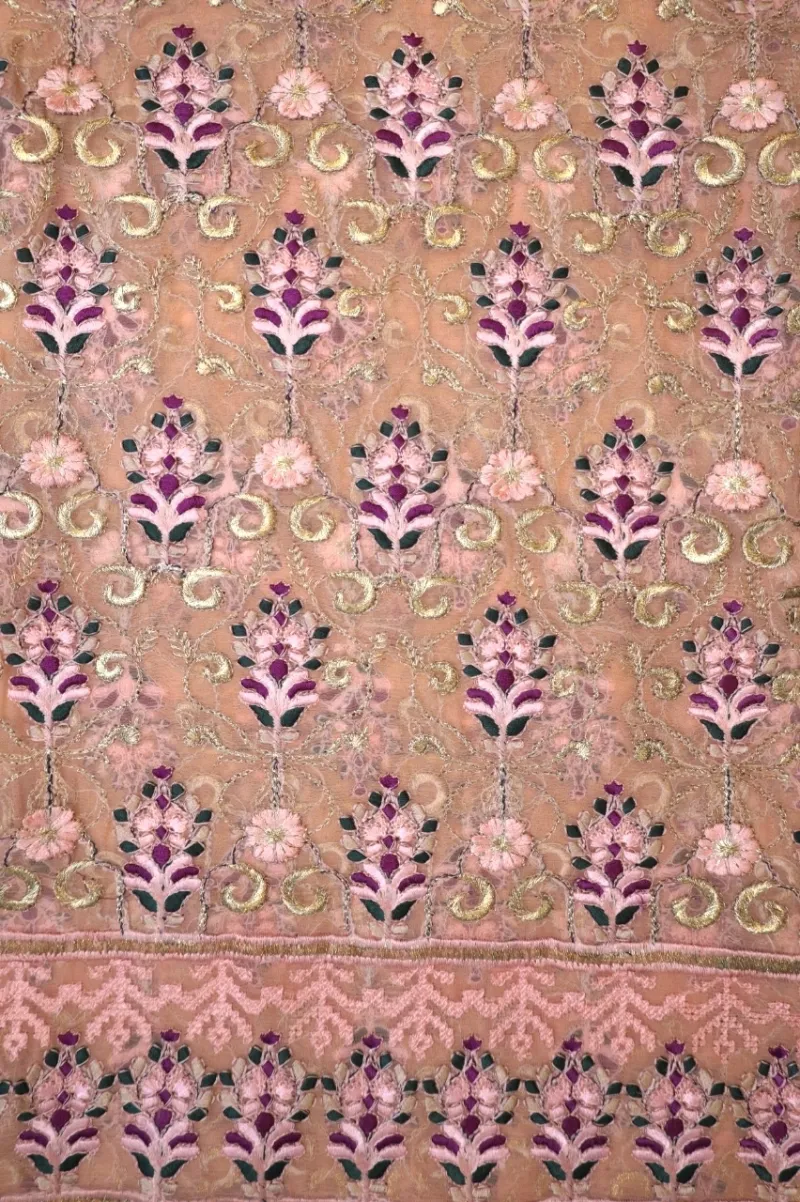 Clothing Women Party Wear Un-stitched 3 Piece Chiffon Dar Al Fashion Potpourri Chiffon Dupatta Front Back Embroidered Heavy Zari Gotapatti Work Peach