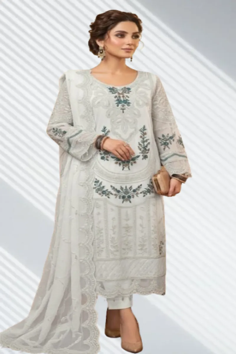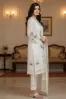 Clothing Women Party Wear Stitched 3 Piece Organza Dar Al Fashion Blend Organza Dupatta Gala Daman Embroidered Regular Zari Sequin Work White Medium